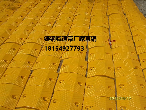 鑄鋼減速帶又稱減速板、減速拱、緩沖帶、減速坡、減速膠、減速墊、減速路拱、橡膠減速板、橡膠路拱、橡膠減速路拱、橡膠減速帶、橡膠緩沖帶、橡膠減速塊、道路減速帶、道路橡膠減速帶、路拱、橡膠減速壟。在國外它還有一個別名叫"躺著的警察",意思是說車輛到這里,就像見到警察一樣要減速。與原來水泥壟,橡膠減速帶相比,鑄鋼減速帶具有減震性,抗壓性極好,壽命長,對車磨損少,黃黑相間,色彩分明,可二次利用等特點。使用減速帶產品之后,很大程度減少了各交通要道口的事故發生,是交通安全的新型專用設施。