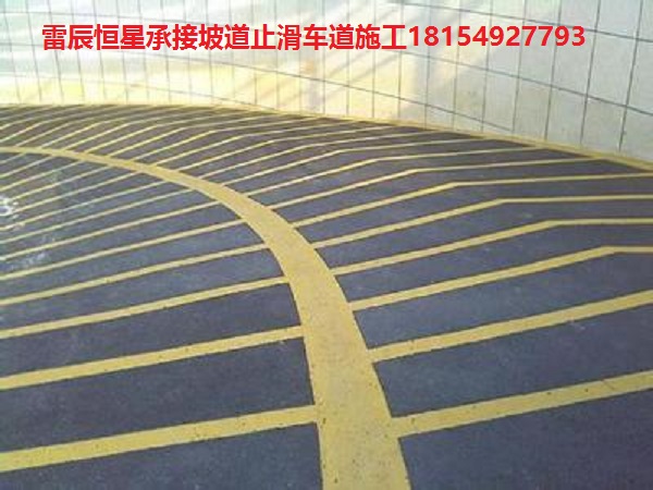 1. 防滑車道又稱無震動止滑車道、停車場防滑坡道、暴砂防滑地面、止滑型坡道、停車場防滑地坪漆等。專門用于各類停車場上、下坡道場所。防滑車道材料一種雙組份、反應硬化性材料,主要成分由是改性樹脂和C料組成,含有多 角性硬度極高的骨材,利用巨大比表面積,達到防滑效果