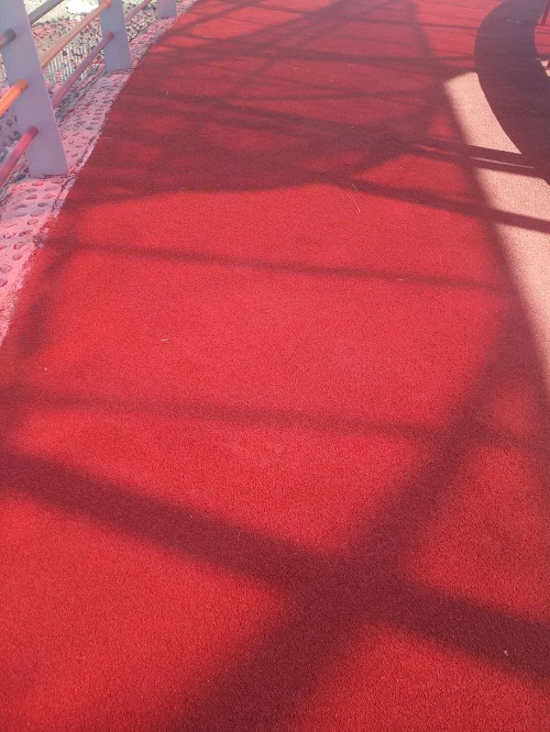 5.、面涂施工需要注意,在浮砂清理干凈之后需要進行面涂施工,面涂需要進行滾涂施工,面涂的用量不能太大,面涂用量大(0.4KG/M2);面涂樹脂用量很大,會造成彩色路面的構造深度達不到要求,防滑效果降低。